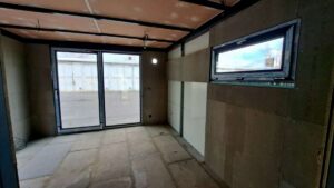 Mobilní dům je vyroben ve fázi hotové hrubé stavby.