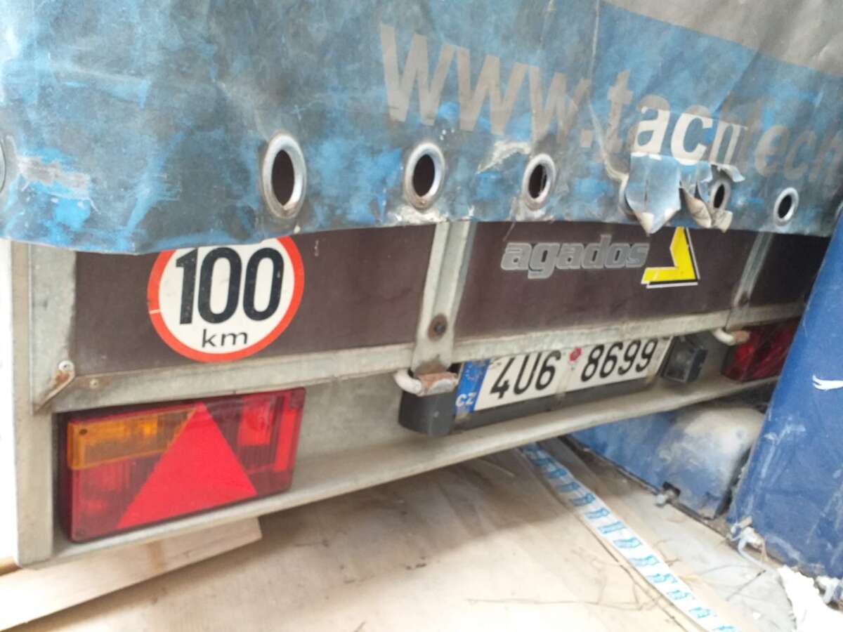 - přívěs nákladní valníkový zn. AGADOS RZ:4U68699, VIN:TKXV311107ABA8569, rok výroby 2007, barva hnědá, jedno kolo má poškozený brzdový mechanismus