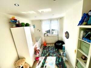 Byt se nachází ve třetím nadzemním podlaží a skládá se z kuchyně, obývacího pokoje, ložnice, dětského pokoje, koupelny s vanou, samostatného WC, technické místnosti (pračka,…). Podlahová plocha bytu činí 58 m2. K bytu náleží sklepní kóje.