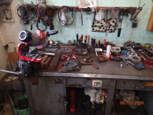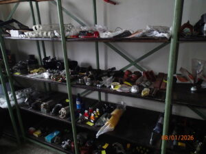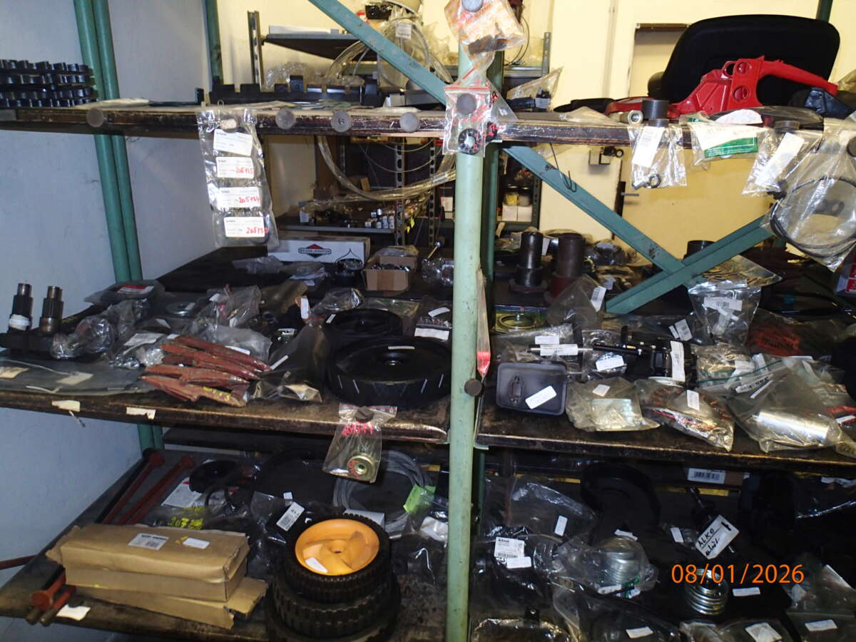 Skladové zásoby náhradních dílů na drobnou zemědělskou techniku, vybavení dílny