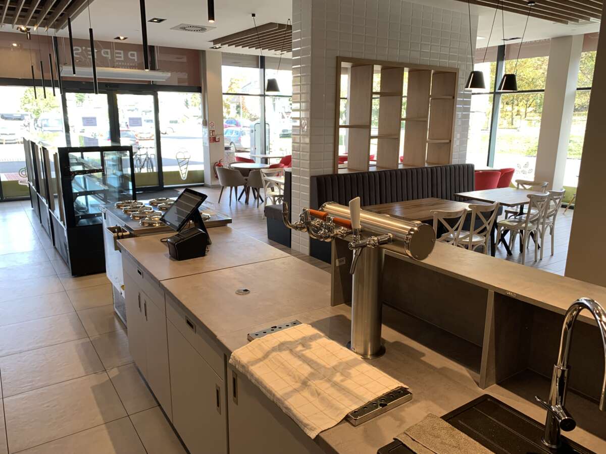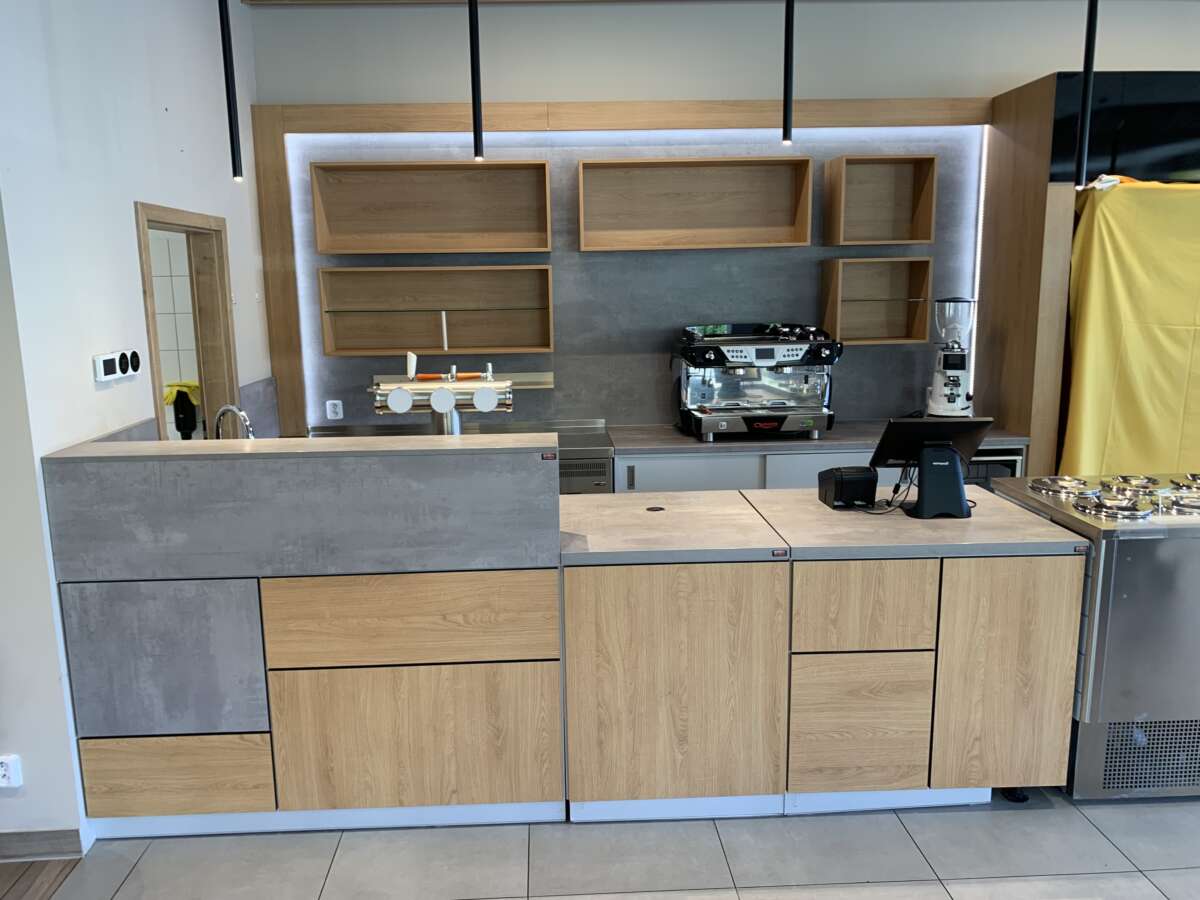 -pracovní stůl mezi pokladnou a pípou-délka 70 cm